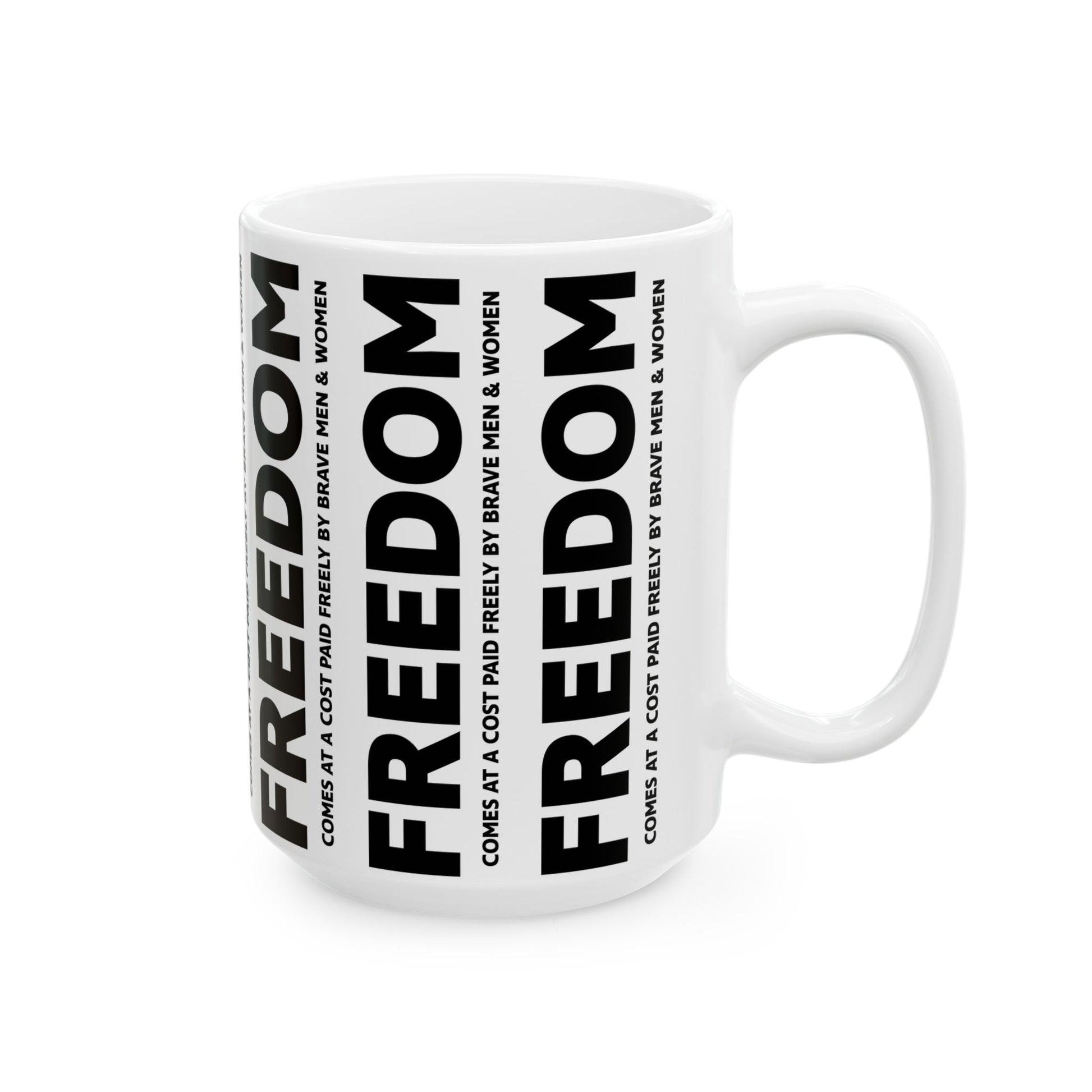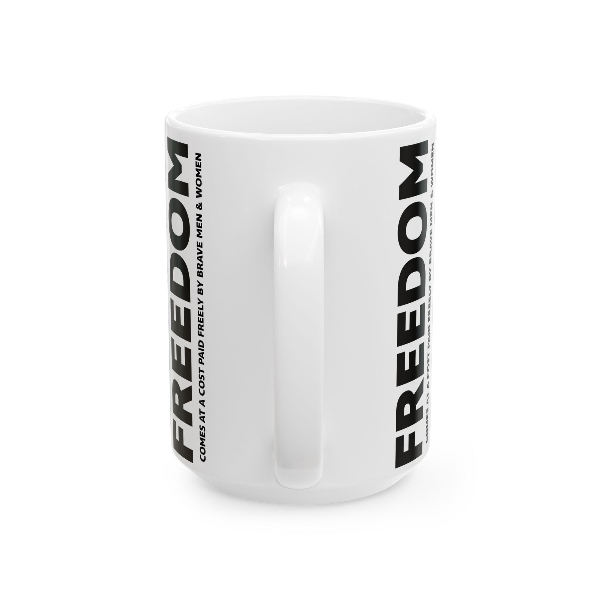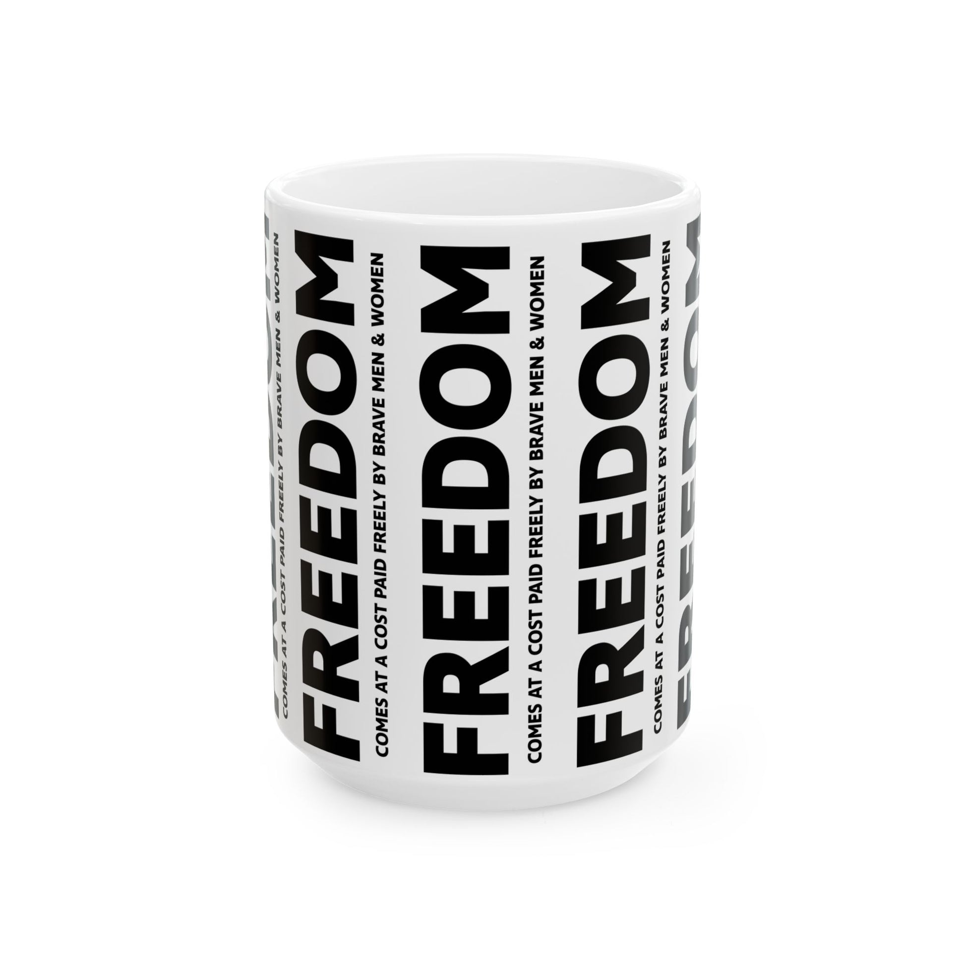 The "Freedom Comes At A Cost Paid Freely By Brave Men & Women" Mug salutes liberation and the price paid, in its design. Perfect for those who appreciate independence and freedom. Great for Fourth of July, Veterans Day, or any occasion that honors freedom, liberty and those who paid the ultimate price.