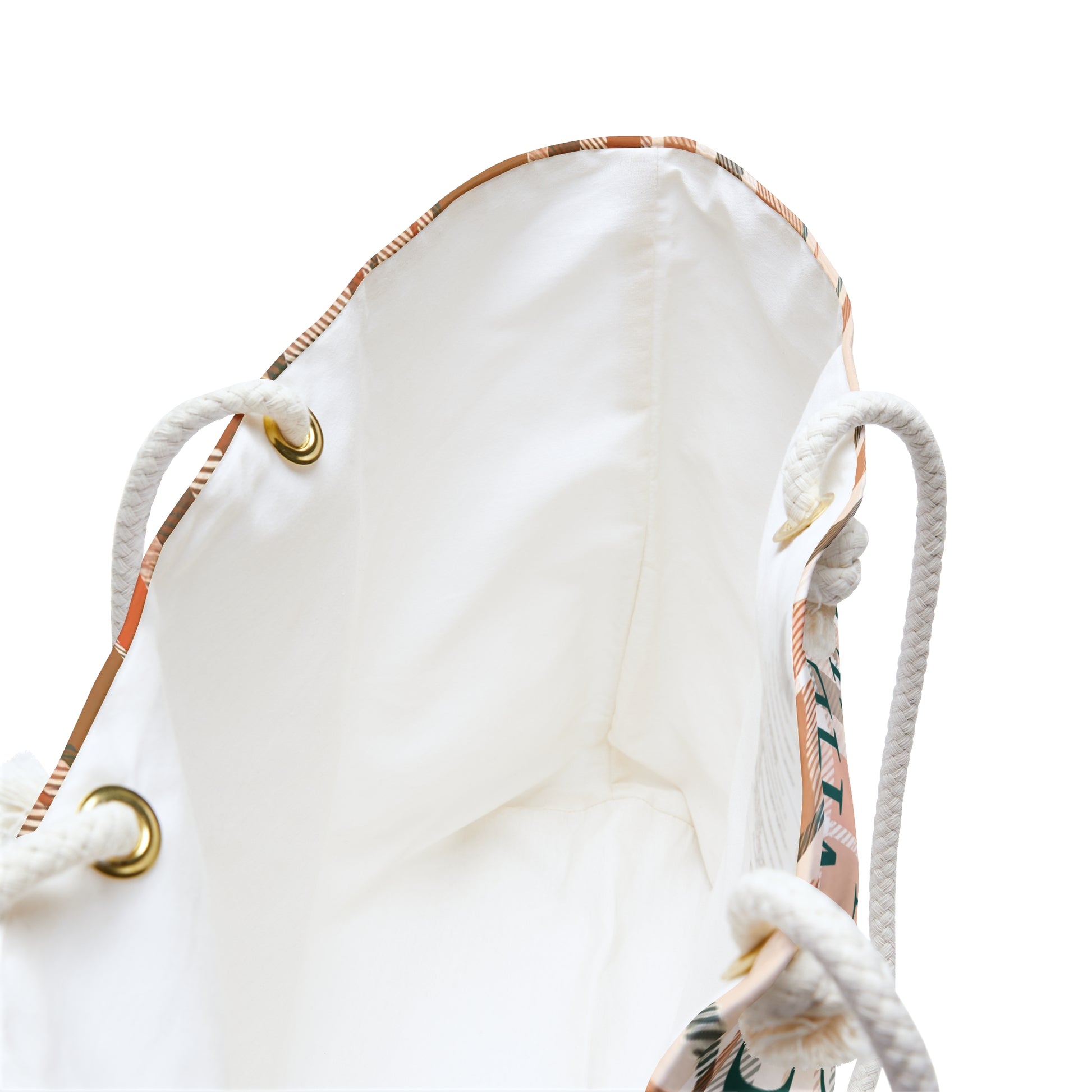 With a spacious 24" x 13" interior, this bag is ideal for weekend getaways, beach trips, or gym sessions. The cream-colored rope handles provide comfort and elegance, making it easy to carry wherever life takes you.