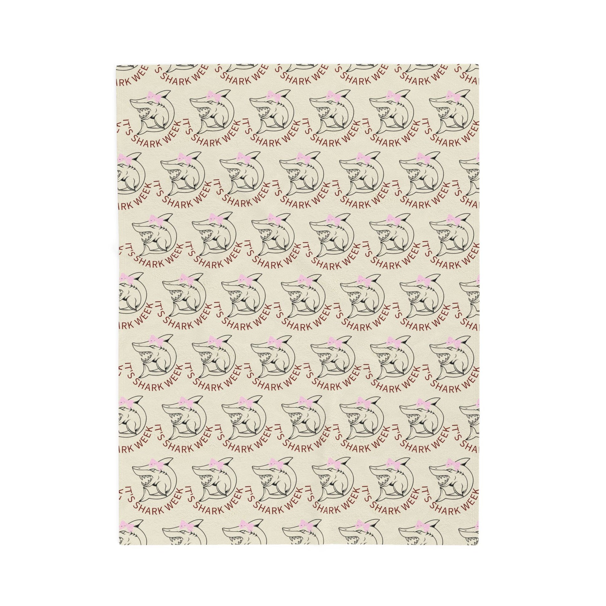 Shark Week plush blanket perfect for cozying up during the annual shark-themed monthly event. Ideal for those enduring Shark Week and want to stay warm and comfortable while watching. Relevant for Shark Week survivors. Great for gifting to those experiencing Shark Week or as a year-round cozy blanket.